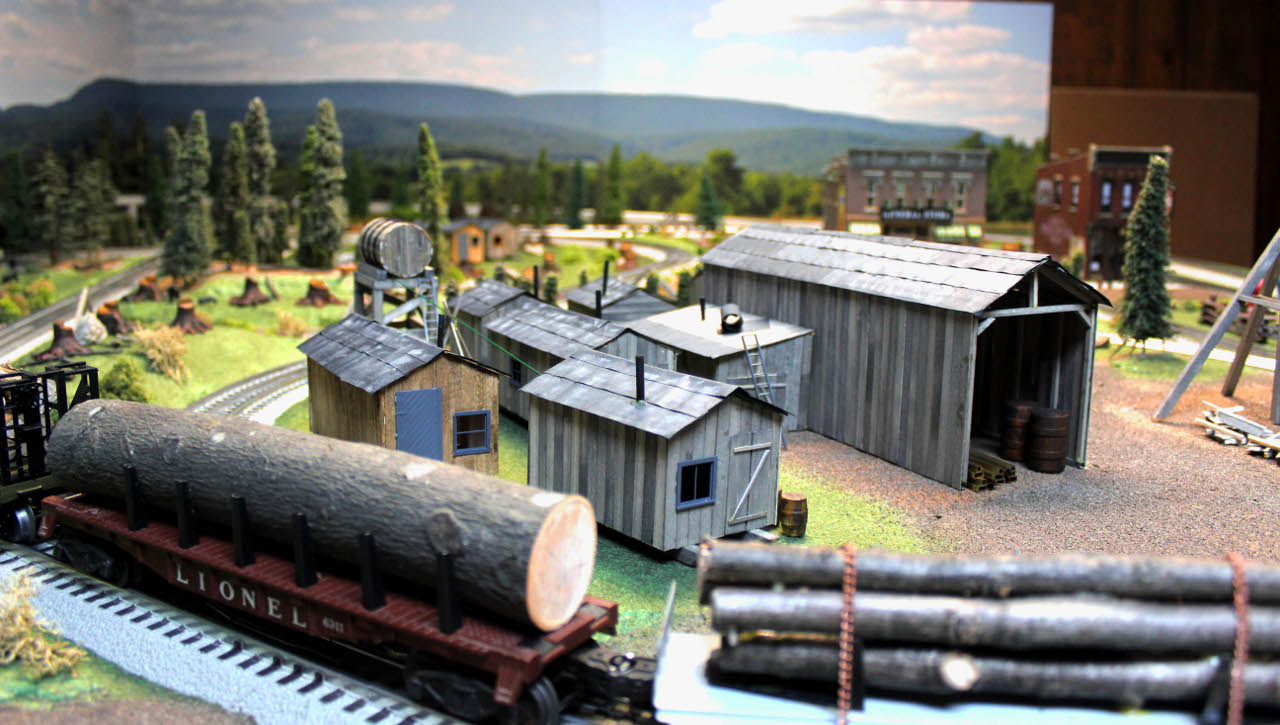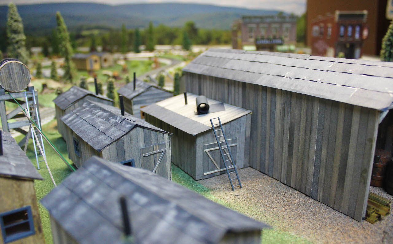 This is another view of the logging camp. Note that the machine shop attached to the rail shed is still