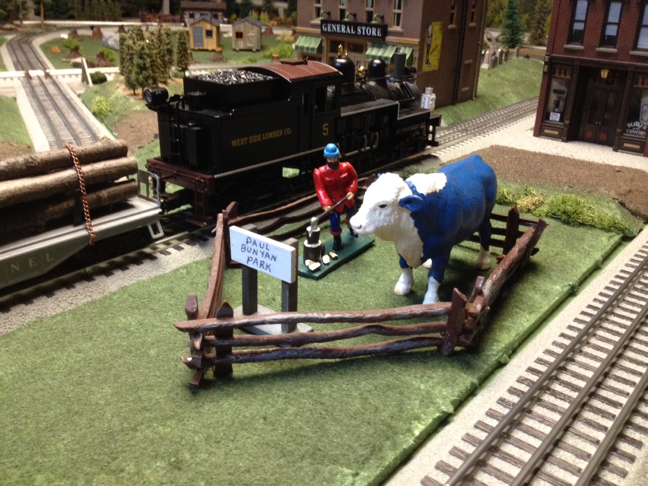 In keeping with the logging theme, I created a Paul Bunyan Park. Babe, the Blue Ox, was